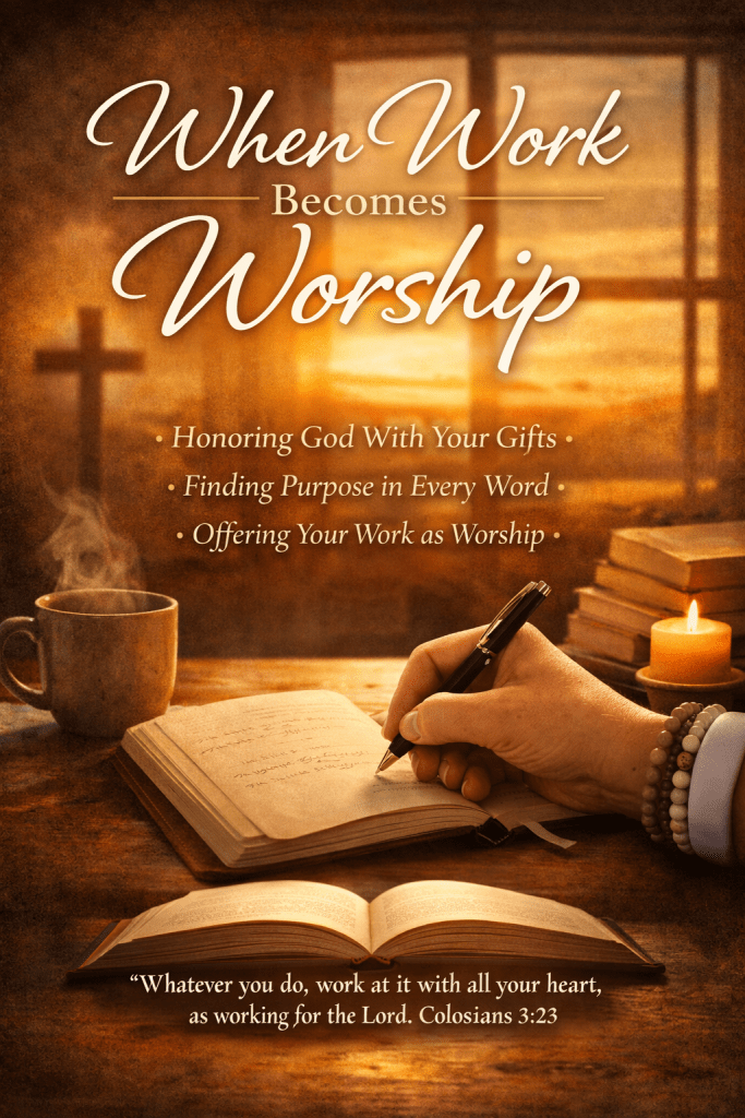 Or a writer sitting in a quiet room, shaping words that point back to God. Every sentence becomes a small offering.